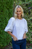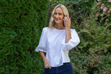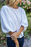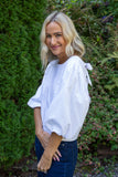 Feminine and full of charm, this blouse features puff sleeves and an added bow detail that adds the perfect touch of sweetness. With its airy fabric and flattering silhouette, it’s a go-to piece for dressing up your everyday look. Tuck it into high-rise jeans or pair with a midi skirt for an effortlessly pretty vibe.