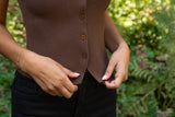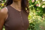 The perfect blend of structure and softness, this ribbed knit tank vest is your new layering essential. Designed with a flattering, body-hugging fit and a classic button-down front, it works beautifully on its own or styled under your favorite blazer. The textured rib knit adds subtle detail, while the versatile silhouette makes it easy to dress up or down.