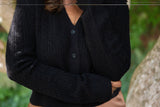 Cozy meets feminine in this soft cable knit cardigan. Featuring classic cable stitching and a relaxed silhouette, it offers timeless texture with a classic colour. The button-down front and ribbed trim add structure, while the plush knit keeps things warm and comfortable.