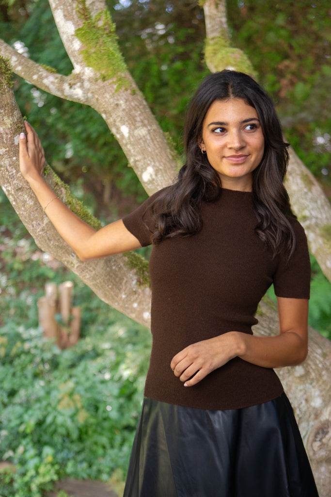 Soft Knit 3/4 Sleeve Sweater - Chocolate