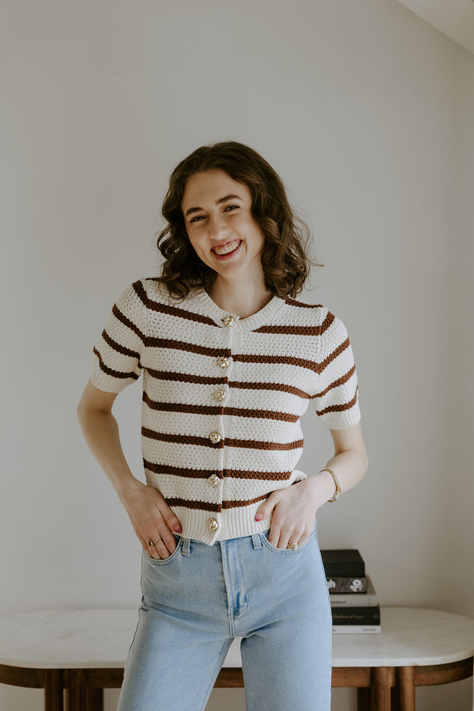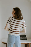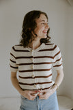 Striped Knit Short Sleeve Cardi - Mocha