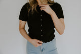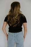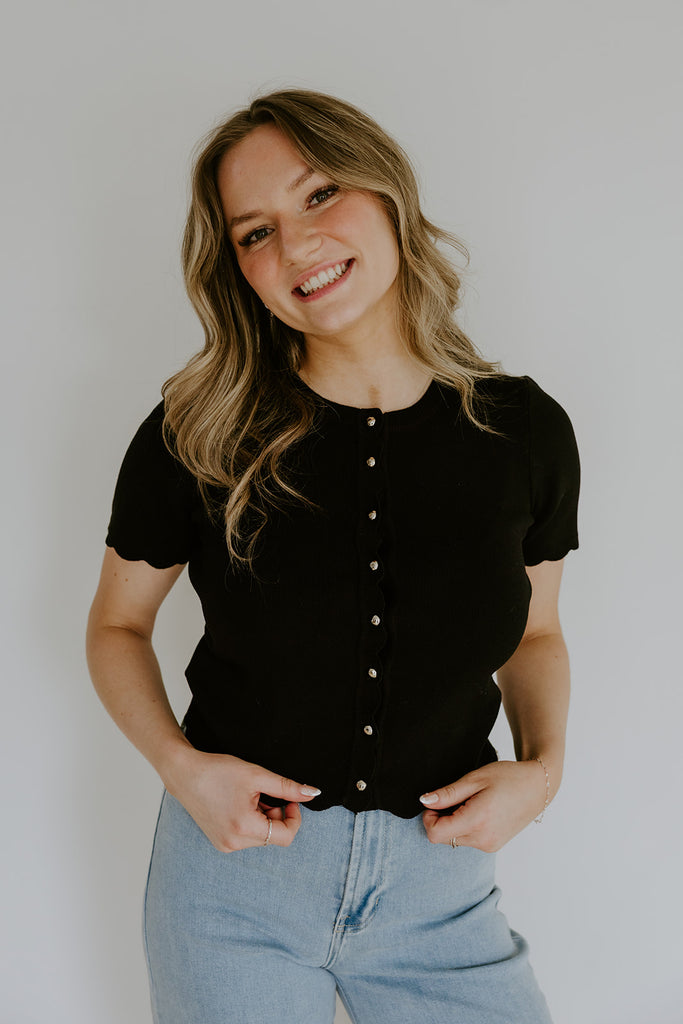 Scalloped Short Sleeve Cardigan - Black