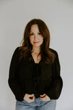 This tie-front eyelet blouse brings an easy, romantic feel to your wardrobe. Crafted with airy eyelet fabric and finished with a flattering front-tie detail, it creates a soft, feminine silhouette. Light and breathable, it’s perfect for sunny days and effortless styling. Wear it with denim, skirts, or layered pieces for a look that feels both relaxed and refined.