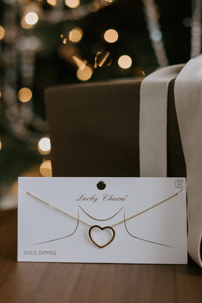 This gold–dipped open heart necklace is a delicate, elegant piece designed for everyday wear. Featuring a minimalist heart pendant on a fine chain, it adds just the right touch of shine—perfect worn alone or layered. A beautiful holiday stocking stuffer that feels classic, thoughtful, and easy to gift.