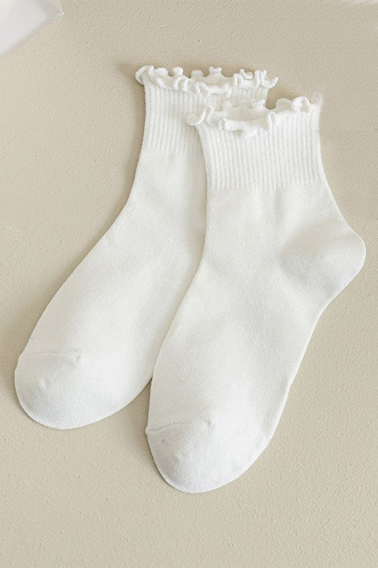 One pair of cute and trendy socks in white; ruffle hem sock.