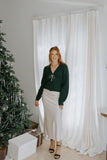Sleek and sophisticated, this black satin maxi skirt features a smooth, glossy finish and a fluid drape that moves beautifully. Designed with a flattering high waist and timeless silhouette, it’s perfect for dressing up with heels or pairing with a simple top for an elevated everyday look.