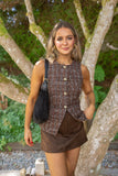 A classic silhouette with a modern touch, this tweed vest is tailored from a wool-like blend for texture and warmth. Featuring a slim fit, satin lining, and subtle business-inspired details, it layers effortlessly over dress pants or skirts. The perfect piece to elevate your autumn wardrobe with timeless charm.