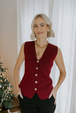 Sleeveless Knit Vest With Gold Buttons - Merlot