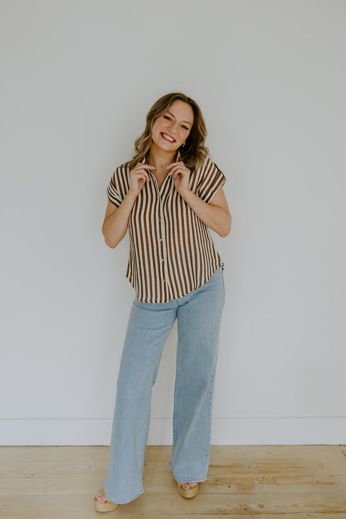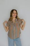Lightweight Short Sleeve Stripe Shirt - Brown