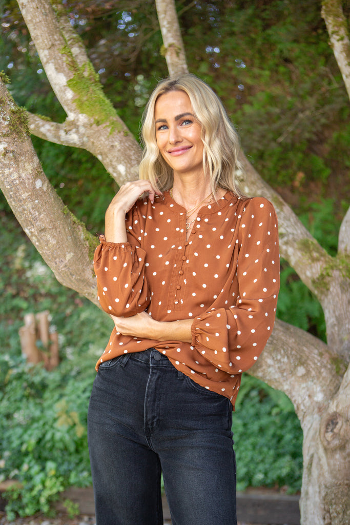 Polka Dot Blouse - Cognac
