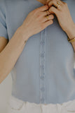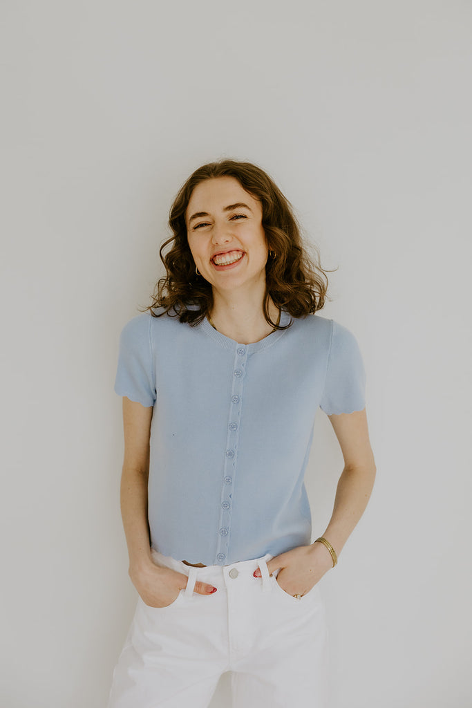 This scalloped sleeve button-up top offers a fresh take on a classic silhouette. Featuring delicate scalloped detailing on the sleeves and a timeless button-front design, it adds a soft, feminine touch to any look. Lightweight and comfortable, it’s easy to style with jeans, skirts, or tailored bottoms for an effortlessly polished outfit.