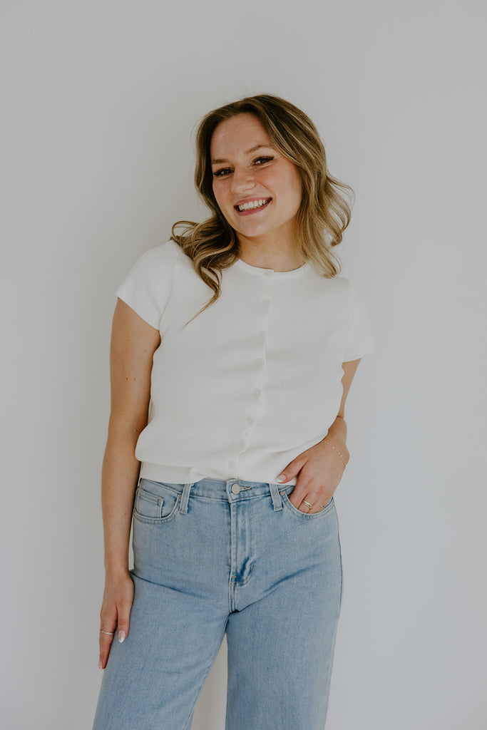 Short Sleeve Classic Cardi - White