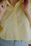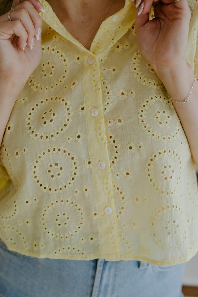Talk about a Spring staple, this eyelet blouse adds the perfect touch of girly! The collared neckline and button details set this blouse apart, making it the perfect piece for photo-shoots, date night, or brunch with the family! Wherever you wear it, you'll look forever fabulous!