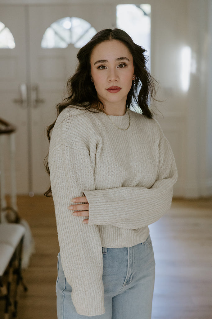 This cable knit sweater brings a playful texture to your wardrobe. The intricate knit pattern and soft, lightweight fabric make it an easy piece to style with jeans, skirts, or leggings.
