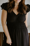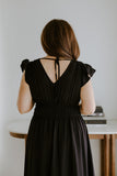 Flutter Sleeve Black Midi Dress
