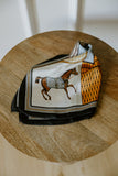 Elevate your wardrobe with our Horse Print Silk Scarf in Blue/Orange, a timeless accessory that blends artistic equestrian flair with luxurious sophistication. Featuring a detailed horse print in vibrant blue contrasted with orange, this scarf adds a chic, refined touch to any outfit, whether you’re dressing up for an event or enhancing your everyday style.