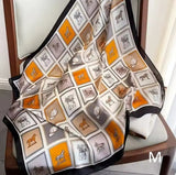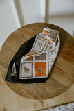 Elevate your wardrobe with our Horse Print Silk Scarf in Taupe/Black, a timeless accessory that blends artistic equestrian flair with luxurious sophistication. Featuring a detailed horse print in soft taupe contrasted with orange and black, this scarf adds a chic, refined touch to any outfit, whether you’re dressing up for an event or enhancing your everyday style.