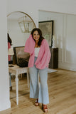 This oversized cardigan features dramatic balloon sleeves for that subtle statement feel we love. Made from a plush knit with an easy drape, it layers beautifully over simple tanks or tees. Cozy enough for lounging, polished enough for going out.