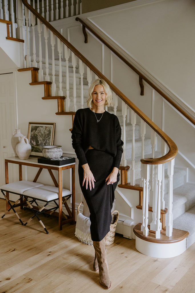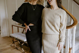 Waffle Sweater & Skirt Set - Black