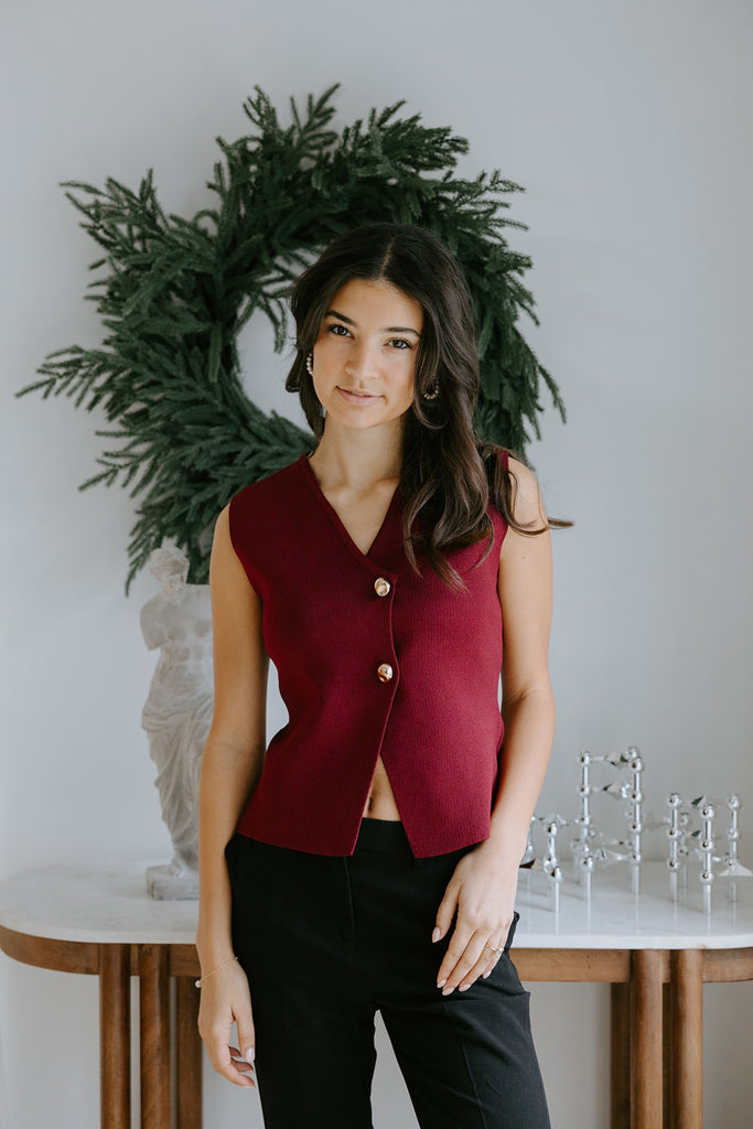 Redefine layering with this modern knit vest top. Its sculpted fit and textured design make it a standout piece, perfect for pairing over crisp shirts or worn solo for a minimalist, elevated look. A versatile piece that blends contemporary edge with timeless comfort.