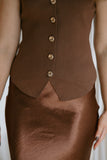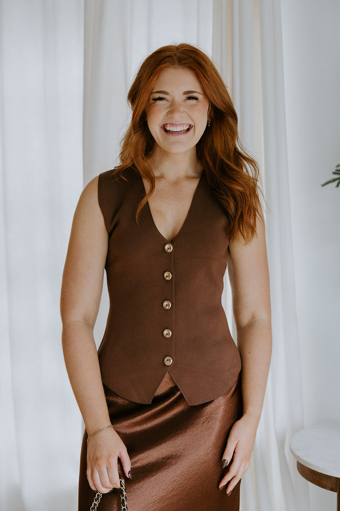 Sleeveless Knit Vest With Gold Buttons - Brown
