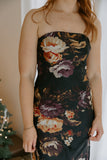 Make a statement in this midnight floral strapless dress, featuring a bold dark-toned floral print that stands out with modern elegance. The strapless neckline highlights the shoulders, while the sleek silhouette creates a flattering and feminine look!