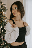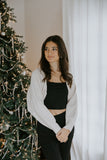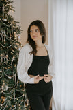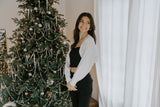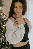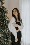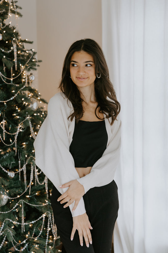 A modern layering essential, this ivory ribbed knit bolero sweater adds texture and elegance to any outfit. Featuring a cropped silhouette with an open front and long sleeves, it’s designed to highlight your shape while providing just the right amount of warmth.