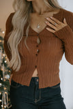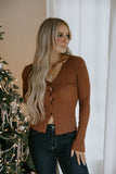 Lightweight Collared Button Knit - Chestnut