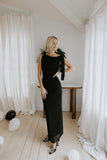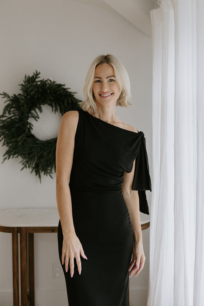 Make a statement this holiday season. This black maxi dress features elegant shoulder detailing that adds a touch of festive drama to a timeless silhouette. Flowing, flattering, and effortlessly chic, it’s perfect for holiday parties, evening celebrations, or any occasion where you want to shine.