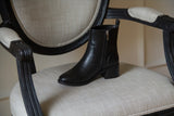 A fresh, modern take on a timeless essential. This Classic Boot blends sleek minimalism with effortless versatility, making it a go-to for every occasion. Crafted from smooth black faux leather, this mid-ankle style features a clean, structured silhouette that pairs seamlessly with denim, skirts, or tailored trousers for a polished everyday look.