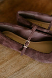 A timeless classic with an elevated feel. Our faux suede ballet flat in rich brown features a soft, velvety finish and a delicate Mary Jane strap for a touch of vintage charm. Designed with a sleek, rounded toe and comfortable flat sole, this pair blends everyday ease with understated elegance.