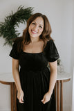 Crafted from plush velvet, this midi dress brings a rich, romantic feel to any occasion. The puff sleeves add soft volume and drama, balancing the sleek, body-skimming shape for a flattering, feminine look. Finished with a smooth drape and a timeless midi length, it’s the perfect piece for holiday parties, winter weddings, or any event where you want to feel effortlessly elegant.
